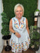 Fresh and eye-catching, this powder blue tiered dress is adorned with colorful floral embroidery across the bodice and hem for a vibrant handcrafted feel. The soft ruffle neckline with a tassel tie adds a playful touch, while the relaxed sleeveless silhouette keeps it breezy and comfortable.
