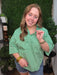 Fresh and timeless, this emerald green gingham blouse features a relaxed silhouette that blends classic charm with everyday ease. The crisp collar and button-front design create a polished look, while the lightweight fabric keeps it breathable and comfortable throughout the day.
