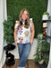 Aubrey, 5'2", is wearing a size large.