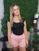 blush pink high-rise denim shorts