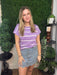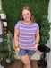 Soft, airy, and effortlessly stylish — our Lavender Skies Stripe Knit Top is the perfect pop of color for your seasonal wardrobe. Featuring a beautiful lavender base with crisp ivory horizontal stripes, this lightweight knit brings a fresh and feminine touch to everyday dressing.