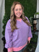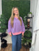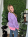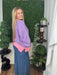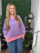 This oversized knit top in soft lavender and pink stripes offers cozy comfort with a casual, cute look. Its roomy fit makes it perfect for relaxing days or layering, bringing a gentle pop of color to your everyday wardrobe.