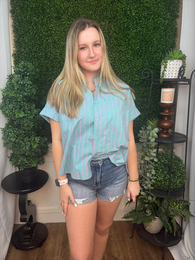 VERY Joversized striped button down casual shirt top - mint