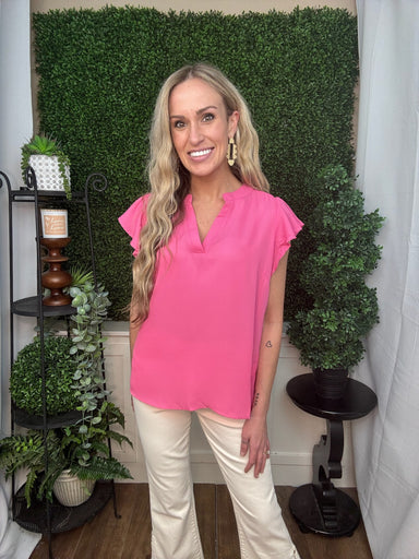 JODIFLstanding neckline boho floral top - fuchsia