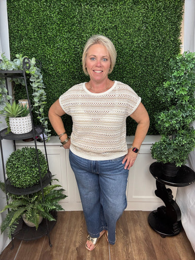 Light and airy, this crochet cardigan features soft sage and cream stripes for a fresh, nature-inspired look. The textured open-knit design gives i...