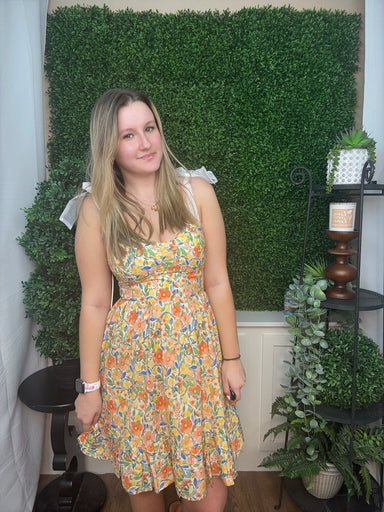 Fresh and feminine, this floral midi dress features a vibrant garden print in warm sunset hues that instantly brightens the look. The structured co...
