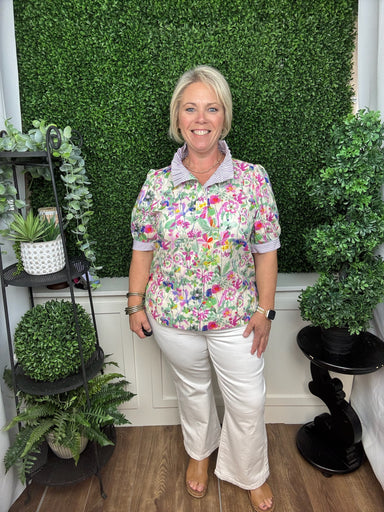 Payton, 5'5", is wearing a size small. Renee, 5'2", is wearing a size large. G15617