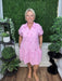 Playful yet polished, this pink dress features intricate lace panel detailing that adds texture and visual interest. The structured collar and soft V neckline bring a tailored touch, while the relaxed silhouette keeps it comfortable and effortless.