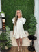 Soft and airy, this ivory dress features a delicate yoke trim that adds subtle texture and vintage-inspired charm. The flutter sleeves bring a light, feminine touch, while the relaxed bodice flows into a tiered skirt for gentle movement and an easy silhouette.