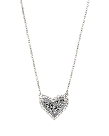 Feminine and classic with an asymmetrical design, the Ari Heart Silver Pendant Necklace in Platinum Drusy is our new obsession. Layer it or let it ...