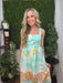 Fresh and whimsical, this aqua midi dress features a cheerful lemon print paired with a picturesque coastline border that evokes a relaxed summer escape. The fitted bodice with delicate button details creates a flattering shape, while the softly gathered skirt adds airy movement.
