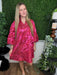 Make an elegant entrance in this sophisticated floral jacquard dress, adorned with a delicate ruffled neckline in striking hot pink. The intricate jacquard pattern adds texture and visual interest, while the refined silhouette flatters every figure. Perfect for special occasions, date nights, or whenever you want to feel polished and put-together, this dress transitions beautifully from day to evening. The thoughtful ruffled detail elevates the design, creating a look that's both timeless and distinctly feminine.