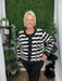 This long sleeve cardigan sweater features a classic black and white stripe pattern that adds timeless elegance to your look. Its tailored fit and soft fabric make it perfect for layering over dressy ensembles, providing both warmth and style. The refined design ensures versatility, making it a sophisticated choice for work or special occasions.