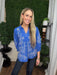 embroidered popover top w/ruffle collar - blue