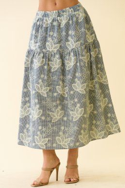 embroidered border crop tank & tiered midi skirt