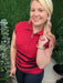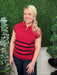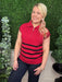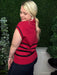 Celebrate gameday in style with the Celia Sweater in red and black. Its cozy knit fabric keeps you warm while the bold color combo adds a cute and spirited touch to your outfit, perfect for cheering on your team with comfort and flair.