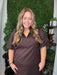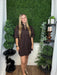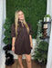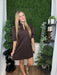 china collar v-neck bubble slv mini dress - brown