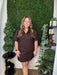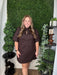 This brown mini dress features a refined China collar and elegant V-neckline, creating a graceful silhouette. The bubble sleeves add a subtle touch of volume, balancing modern style with classic charm. Perfect for special occasions or chic everyday wear, this dress embodies understated sophistication.