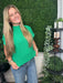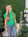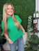 The Diamond/Cable Knit Cap Sleeve Sweater in Kelly Green blends cute details with trendy style. Its textured knit pattern and cap sleeves create a fresh, eye-catching look that's perfect for adding a pop of color to your seasonal wardrobe.