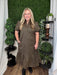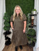 This floral print midi dress features delicate pleats and puff sleeves, creating a charming and feminine silhouette. Its flowy design and soft pattern make it a cute choice for any occasion, adding effortless elegance to your wardrobe.