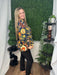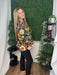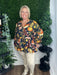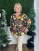 This navy mix floral print top features a stylish front tie, adding a charming detail perfect for fall. Its soft fabric and relaxed fit make it an easy, comfortable choice for layering on crisp autumn days.