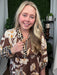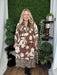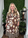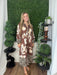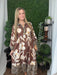 This brown mix collared midi dress features a refined flower border print, combining classic elegance with subtle charm. Its tailored silhouette and timeless design make it a perfect choice for a classy, polished look.