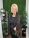 knit open front cardigan jacket 3/4 sleeves - black