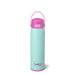 This innovative push-button cap with locking mechanism makes hydrating on the go leak free and worry free. Pop open the top to easily sip and flip open the cap to refill without the inconvenience of twisting it off. The innovative lid design gives you the option to sip freely or chug quickly. Grab-and-go flex handle is convenient for carrying on hikes and hooking in lockers.