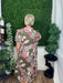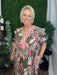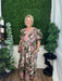 Paisley pattern smocked cuff band short sleeve tiered midi dress featuring multicolor V-neck band collar. Side Pockets. Lined. Woven. Non-sheer. Lightweight.