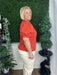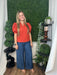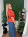 This rust-colored ruffle v-neck top features charming puff sleeves, creating a warm and stylish look perfect for fall. Its flattering neckline and soft fabric make it an ideal piece for layering or wearing on crisp autumn days.