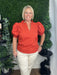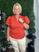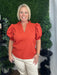 ruffle v-neck puff sleeve top - rust