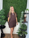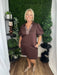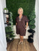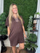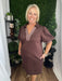 Solid jersey knit short puff sleeve mini dress featuring houndstooth pattern contrast accent band and split collar V-neck placket detailing. Side pockets. Unlined. Knit. Non-sheer. Lightweight.