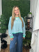 This striped crop sweatshirt in jade and purple features charming lettuce marrow detailing for a cute, playful vibe. Its soft fabric and relaxed fit make it perfect for adding a fun, cozy touch to your everyday style.