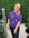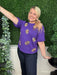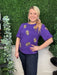 Show your team spirit in style with the Tina Footballs Top in vibrant purple and gold. Designed for comfort and flair, this top is perfect for gamedays, helping you stand out in the crowd while cheering on your favorite team. Its bold colors and sporty look make it an essential addition to your game day wardrobe.