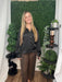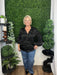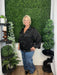 This black v-neck collar button-down top combines classic tailoring with an elegant silhouette. Its refined design and sleek finish make it perfect for polished, sophisticated looks suitable for both work and special occasions.