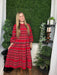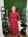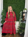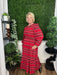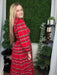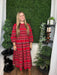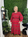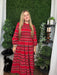 Cotton plaid midi length dress features smocking at bodice, long sleeves and ruffle neckline, shoulders and tiers. Measures approximately 48" from shoulder to hem on size small.