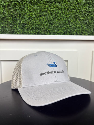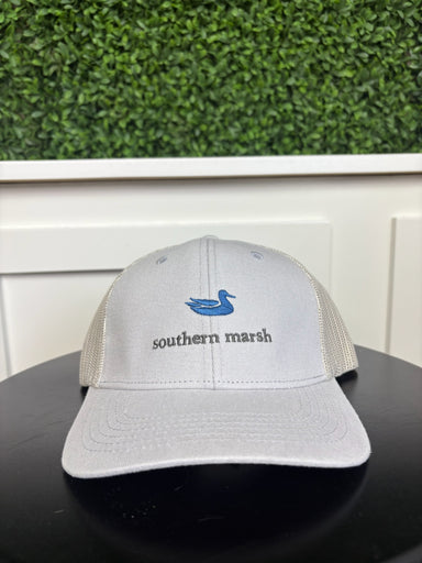 The Lure Patch Meshback Trucker in navy and white combines classic trucker style with outdoor-inspired flair. Featuring a breathable mesh back and ...