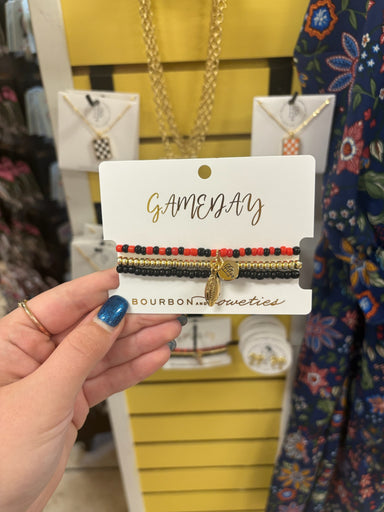 BOURBON AND BOWETIESgameday sretchy stack bracelet - red/black