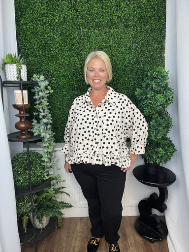 Embrace effortless style with this oversized knit top in classic black, elevated by charming raw edge detailing. The relaxed fit drapes beautifully...