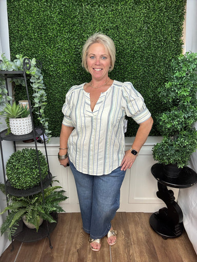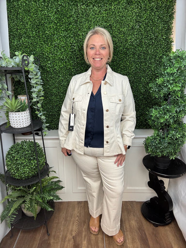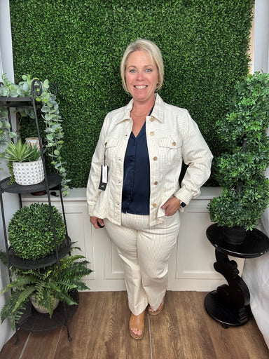 Renee, 5'2", is wearing a size large. Tank top shirt perfect for layering, especially with this gorgeous blazer!