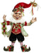Full of festive spirit, the Mark Roberts Mingle and Jingle Elf is dressed to spread holiday cheer! His vibrant red vest and matching hat perfectly complement a soft green coat, while dark pants create a striking contrast that makes his ensemble pop. Red and white striped stockings add a playful touch, and his outfit is adorned from head to toe with festive bows and sprigs of greenery. Topping it all off, a large gold bell jingles at the tip of his hat, making this delightful elf the perfect addition to your holiday décor!