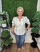 short sleeve popover woven top - cream/blue