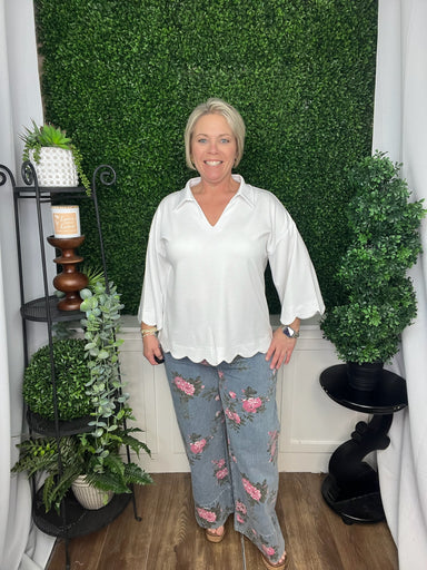 Renee, 5'2", is wearing a size large. Link to floral pants here. G15617