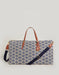 If you have jetset mindset like we do, then you need our Voyager Duffle. This zip-top is made with our signature linen and accented with our embroidered nautical logo fob. Easily carry through TSA by the faux leather handles or wear by the webbed, adjustable and detachable crossbody strap to keep things moving. The ample interior holds it all, while the convenient trolley sleeve quickly slips over the handle on your roller luggage.