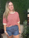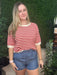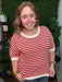 Playful and eye-catching, this soft knit top features bold candy-red and cream stripes for a fresh, cheerful look. The relaxed silhouette is complemented by a classic round neckline and gently dropped shoulders, giving it an effortless, laid-back feel. Ribbed trims at the neckline, cuffs, and hem add subtle structure while keeping the fit comfortable.