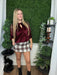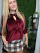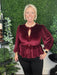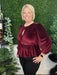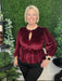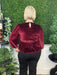 scallop velvet bow detail 3/4 sleeve knit top - burgundy
