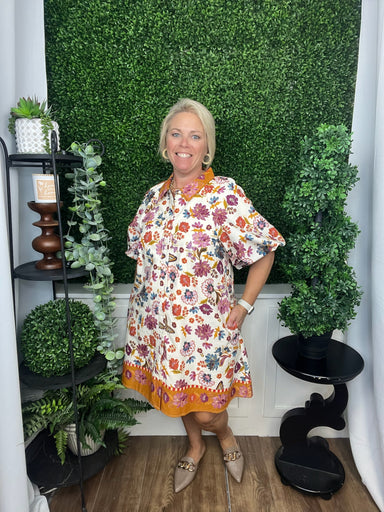This collared button-down mini dress in ivory multi combines classic tailoring with a delicate floral print for a dressy, polished look. The struct...