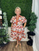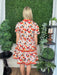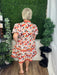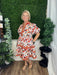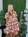 floral print short bubble sleeve pullover mini dress - pumpkin