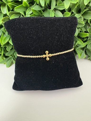 Elevate your style with the EXT Signature Cross Gold Pattern 3mm Bead Bracelet. Featuring finely crafted 3mm gold beads and a distinctive cross des...