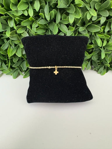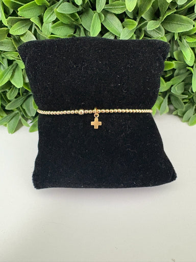 Little things mean a lot. Made with 2mm, 14kt gold-filled beads, and our new 14kt gold-filled 4mm signature cross small gold charm Worry-free wear...